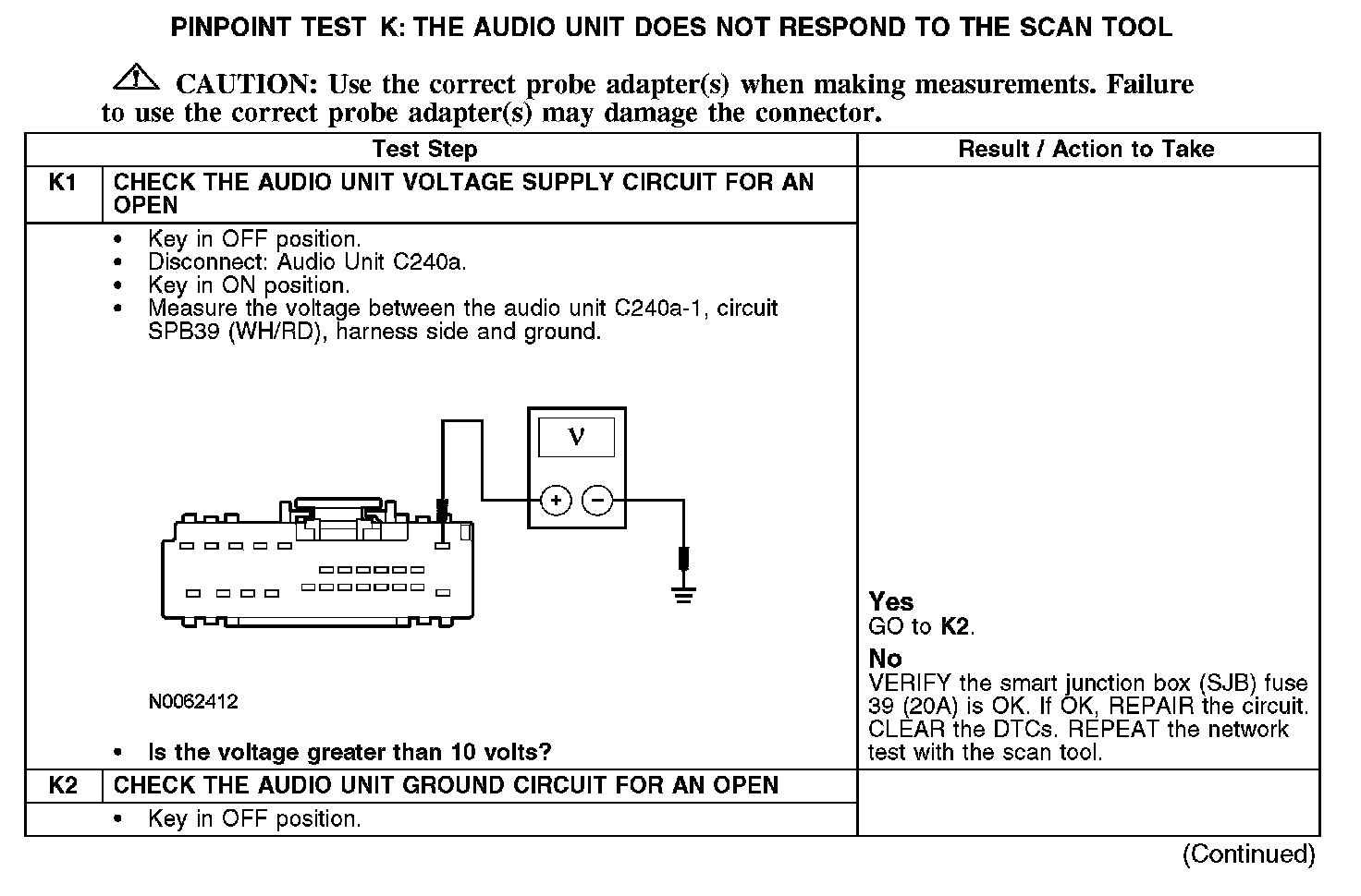PINPOINT TEST K: THE AUDIO UNIT DOES NOT RESPOND TO THE SCAN TOOLNormal Operation