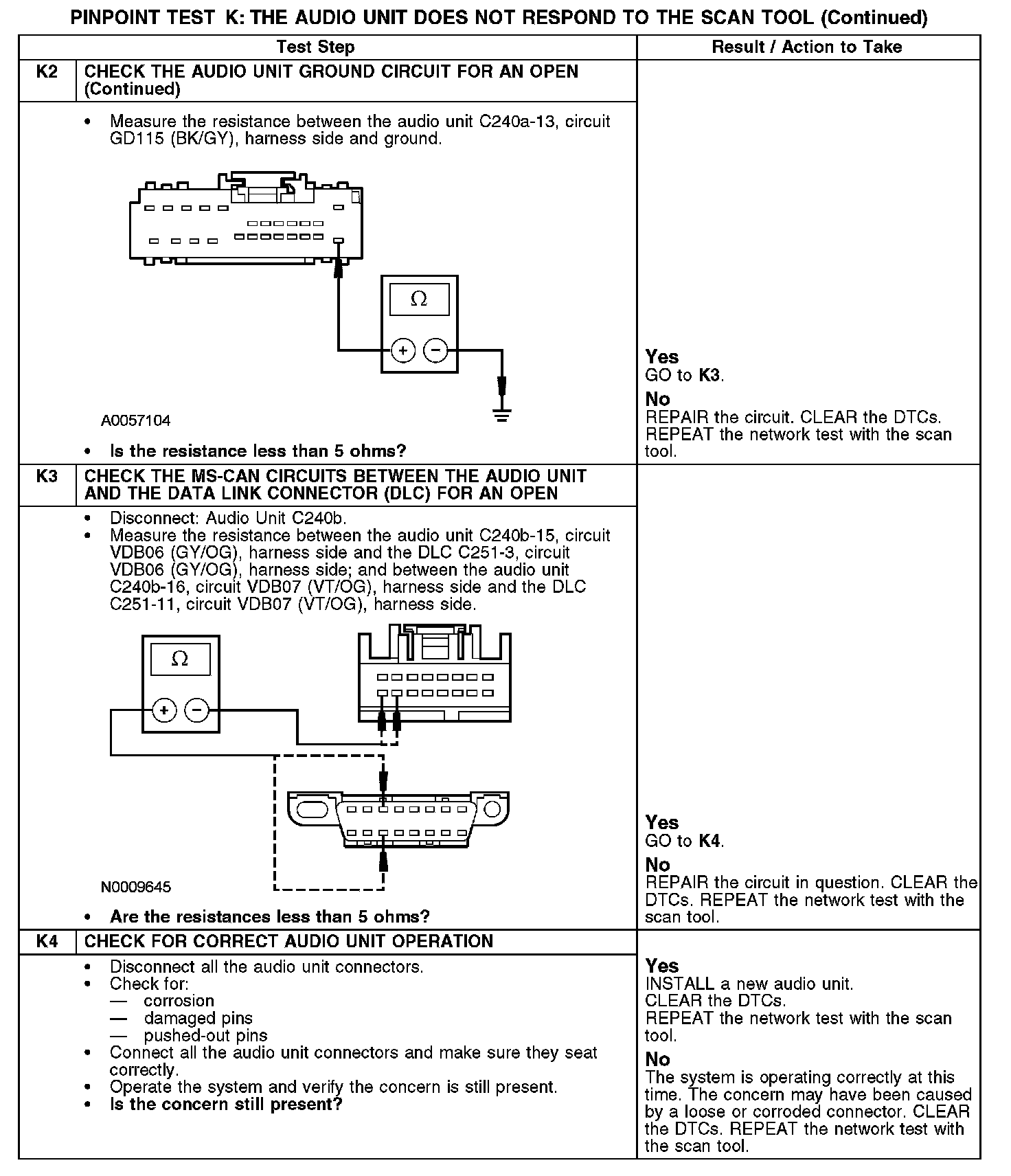 Test K: The Audio Unit Does Not Respond To The Scan Tool