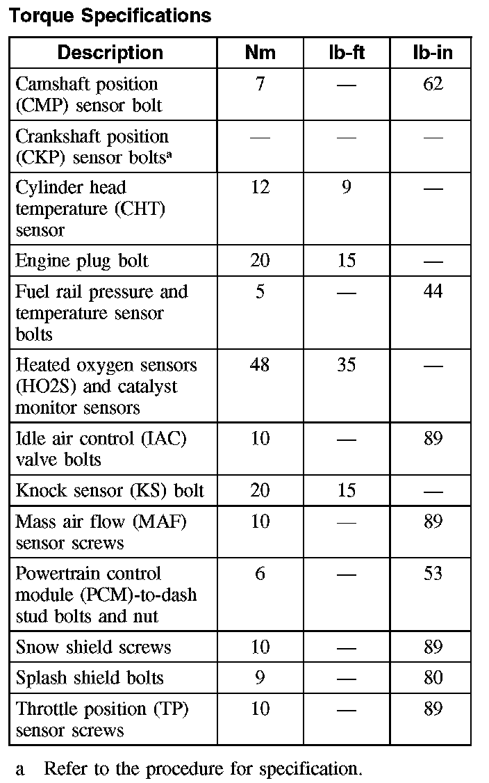 Torque Specifications: