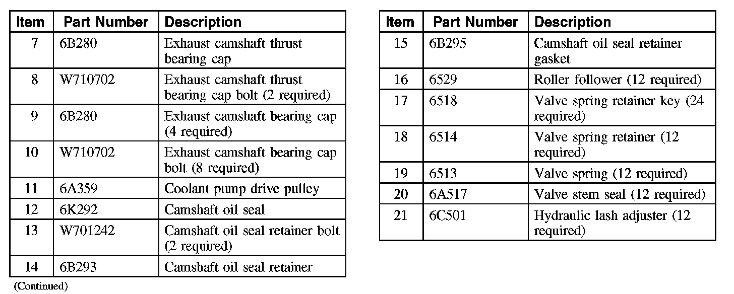 Valve Train Components - LH (Part 2):