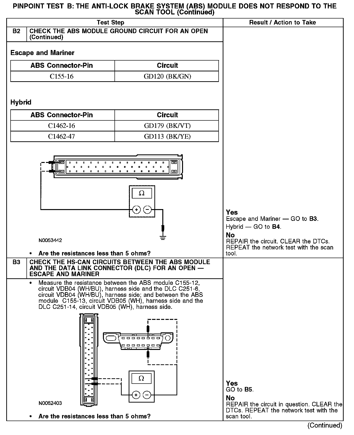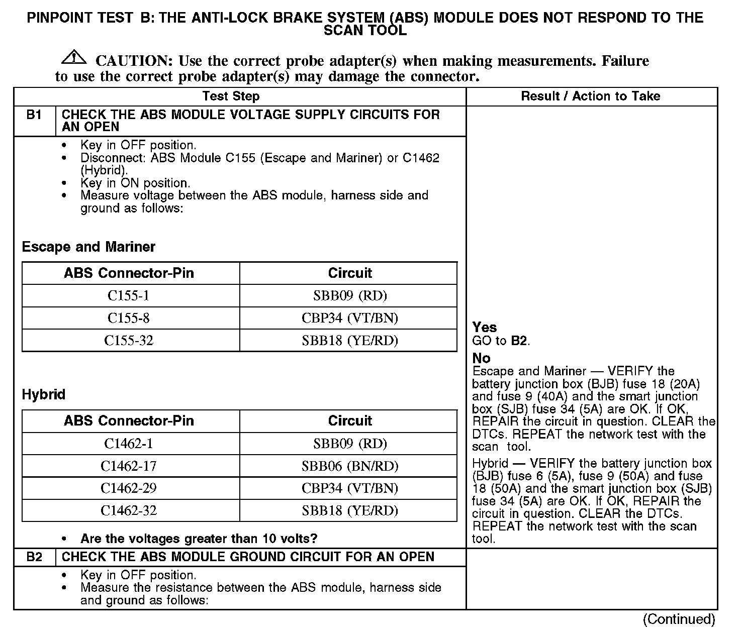 PINPOINT TEST B: THE ANTI-LOCK BRAKE SYSTEM (ABS) MODULE DOES NOT RESPOND TO THE SCAN TOOL