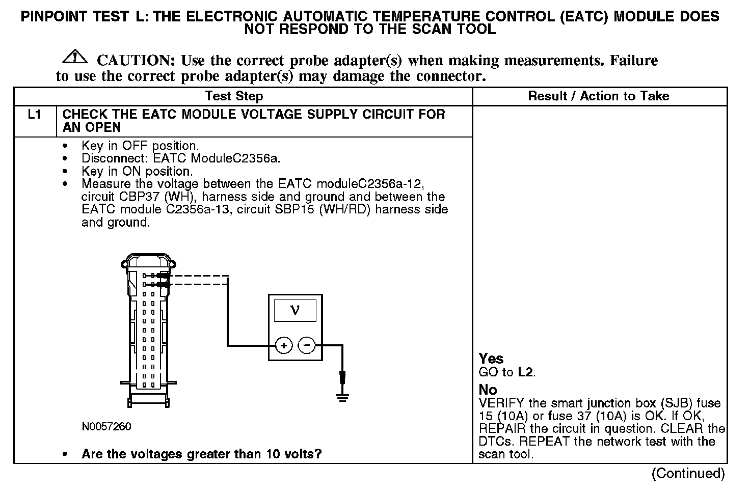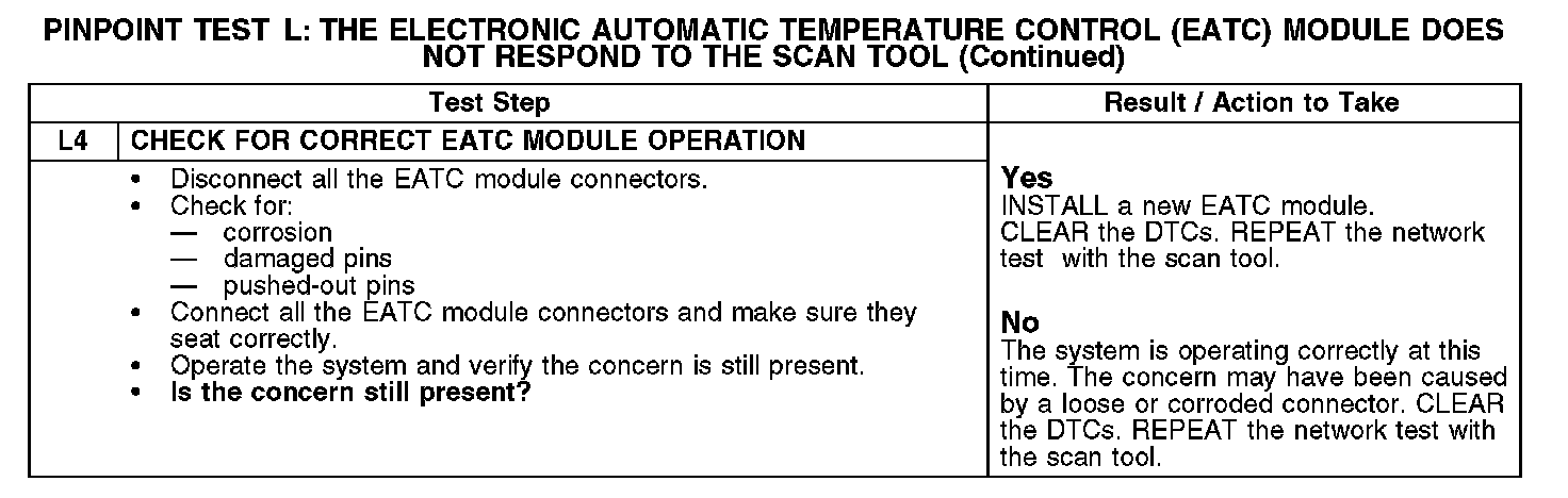 PINPOINT TEST L: THE ELECTRONIC AUTOMATIC TEMPERATURE CONTROL (EATC) MODULE DOES NOT RESPOND TO THE SCAN TOOL