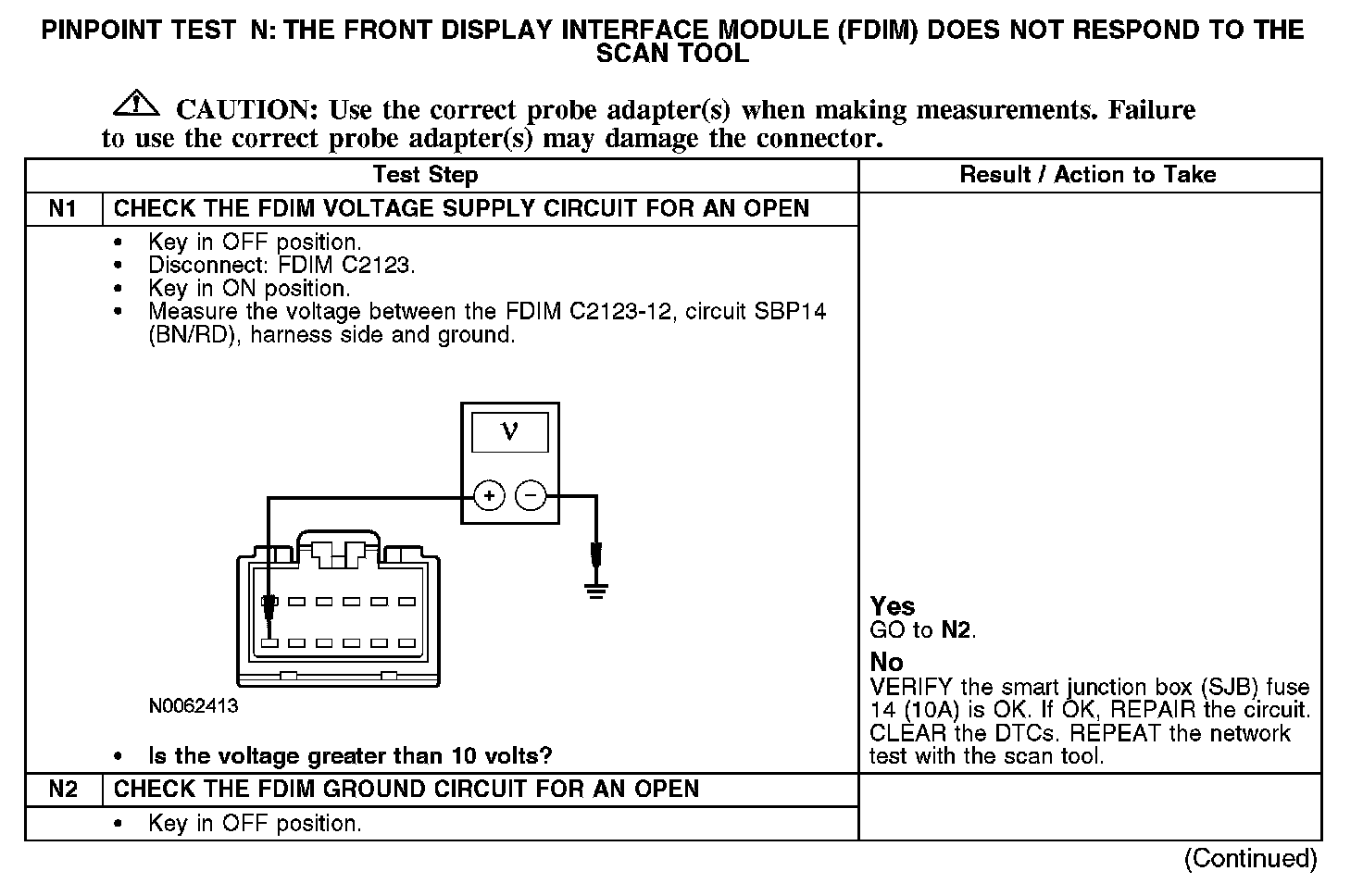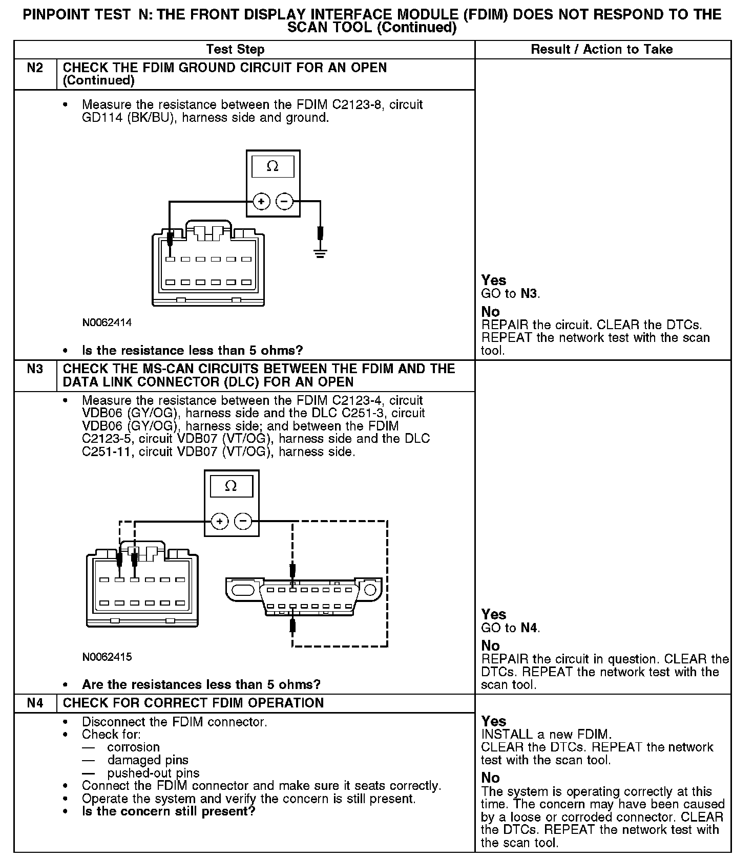 PINPOINT TEST N: THE FRONT DISPLAY INTERFACE MODULE (FDIM) DOES NOT RESPOND TO THE SCAN TOOL