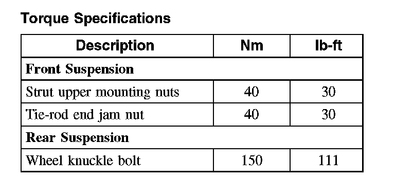 Torque Specifications