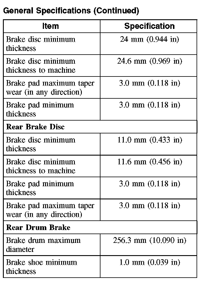 General Specifications Front and Rear