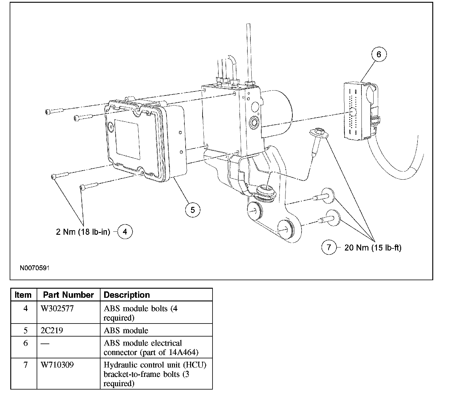 NOTE: On vehicles equipped with roll stability control (RSC), the ABS module and the hydraulic control unit (HCU) are calibrated to one another. Do not swap ABS modules between RSC-equipped vehicles.