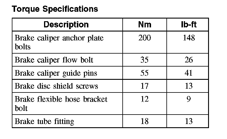Torque Specifications, Front
