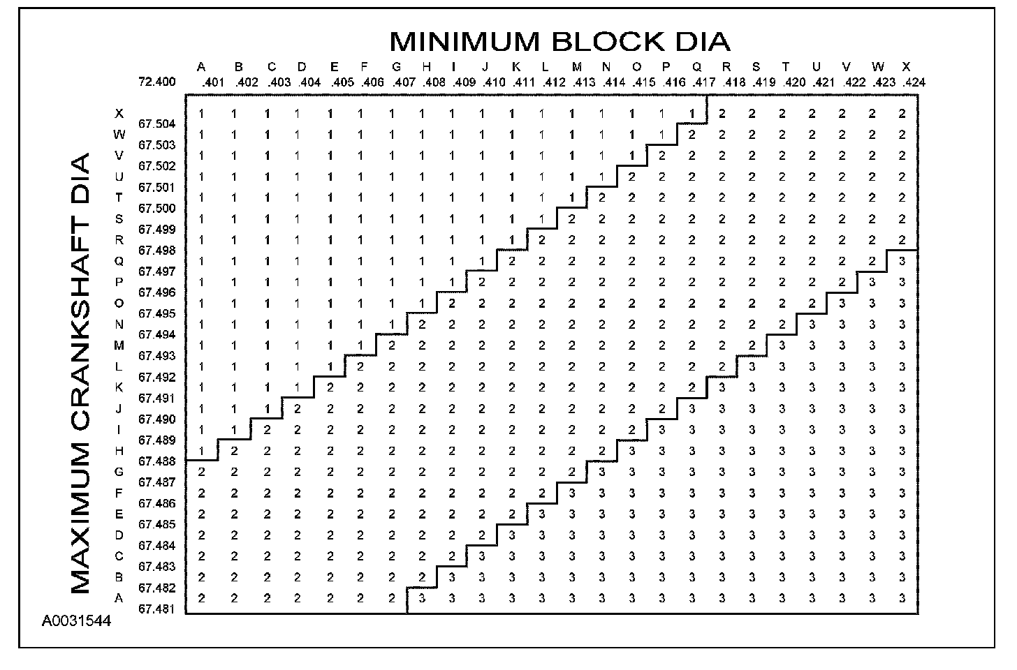 Bearing bore diameter (with assembled liners) 53.049-53.027 mm (2.0885-2.0877 in)