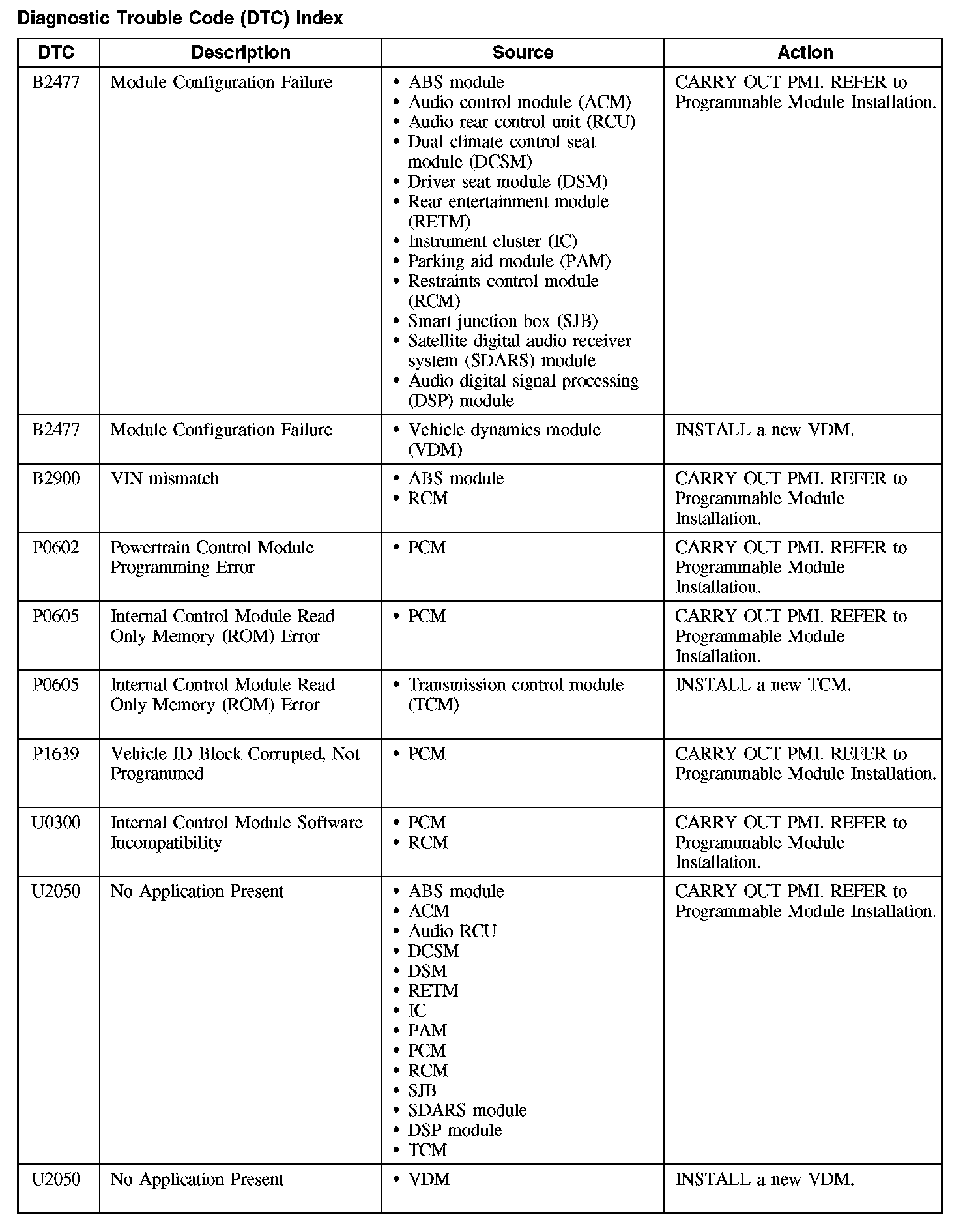 B2477-B2900 / P0602-P1639 / U0300-U2050: