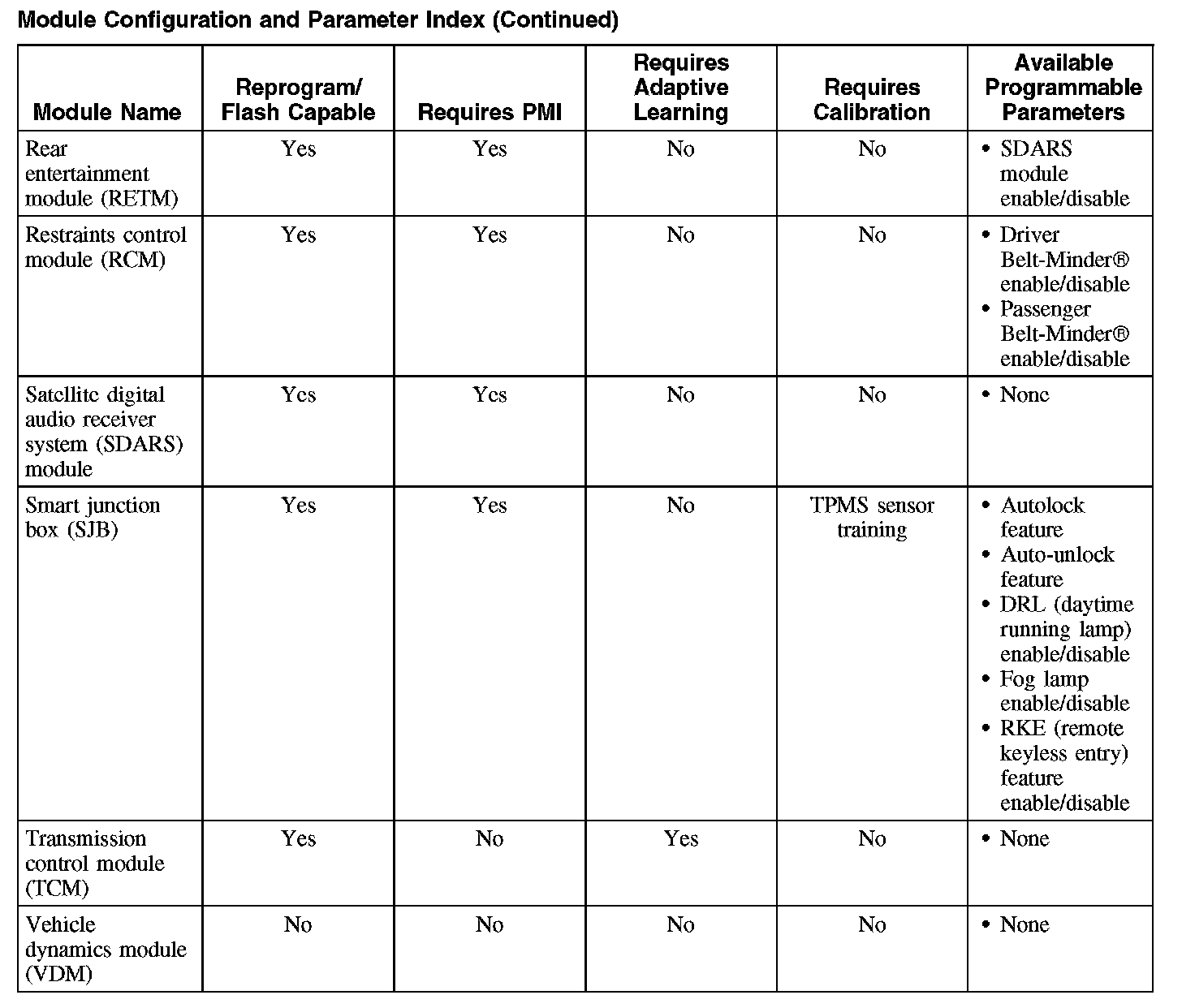 Programmable parameters are customer preference items that may be modified by the dealer via scan tool or in some cases modified by the customer following a procedure listed in the vehicle Owner's Literature. While many configuration options may exist for a module, only a few of these options are programmable parameters.
