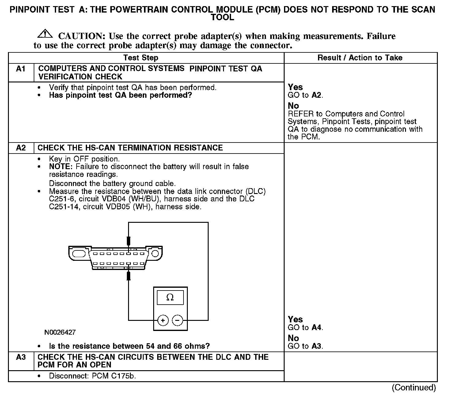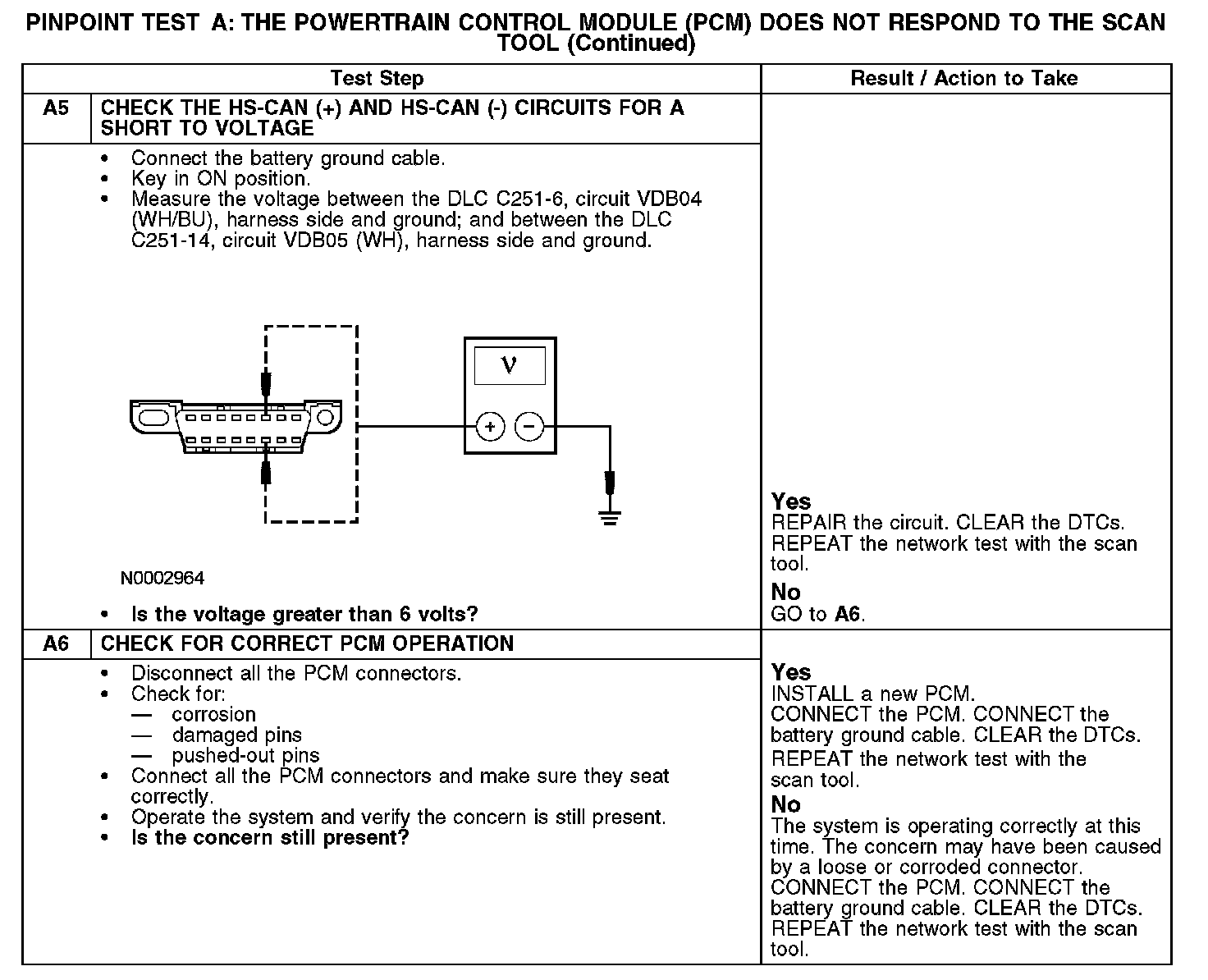PINPOINT TEST A: THE POWERTRAIN CONTROL MODULE (PCM) DOES NOT RESPOND TO THE SCAN TOOLNormal Operation