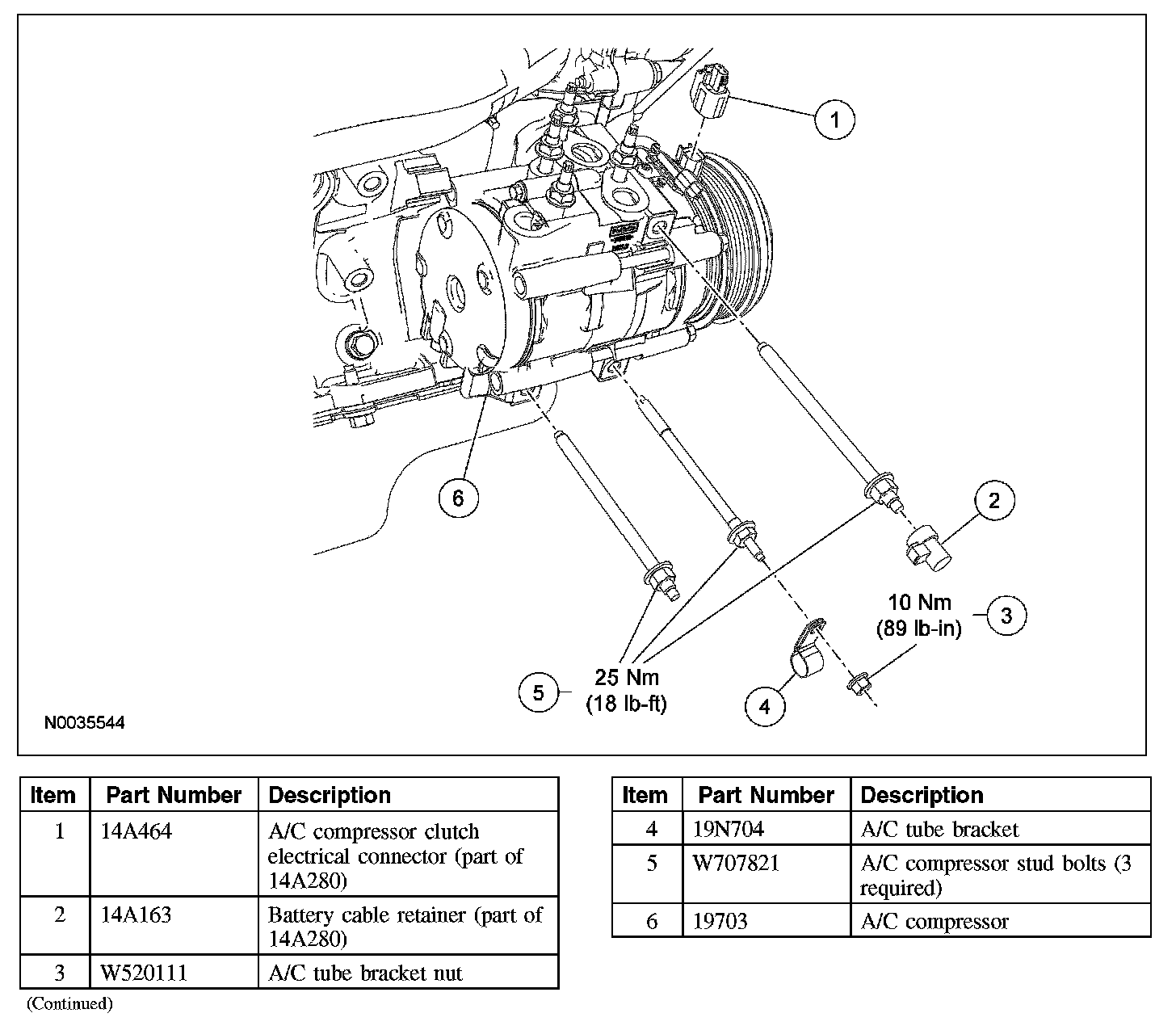 4. Detach the battery cable retainer from the A/C compressor stud bolts.