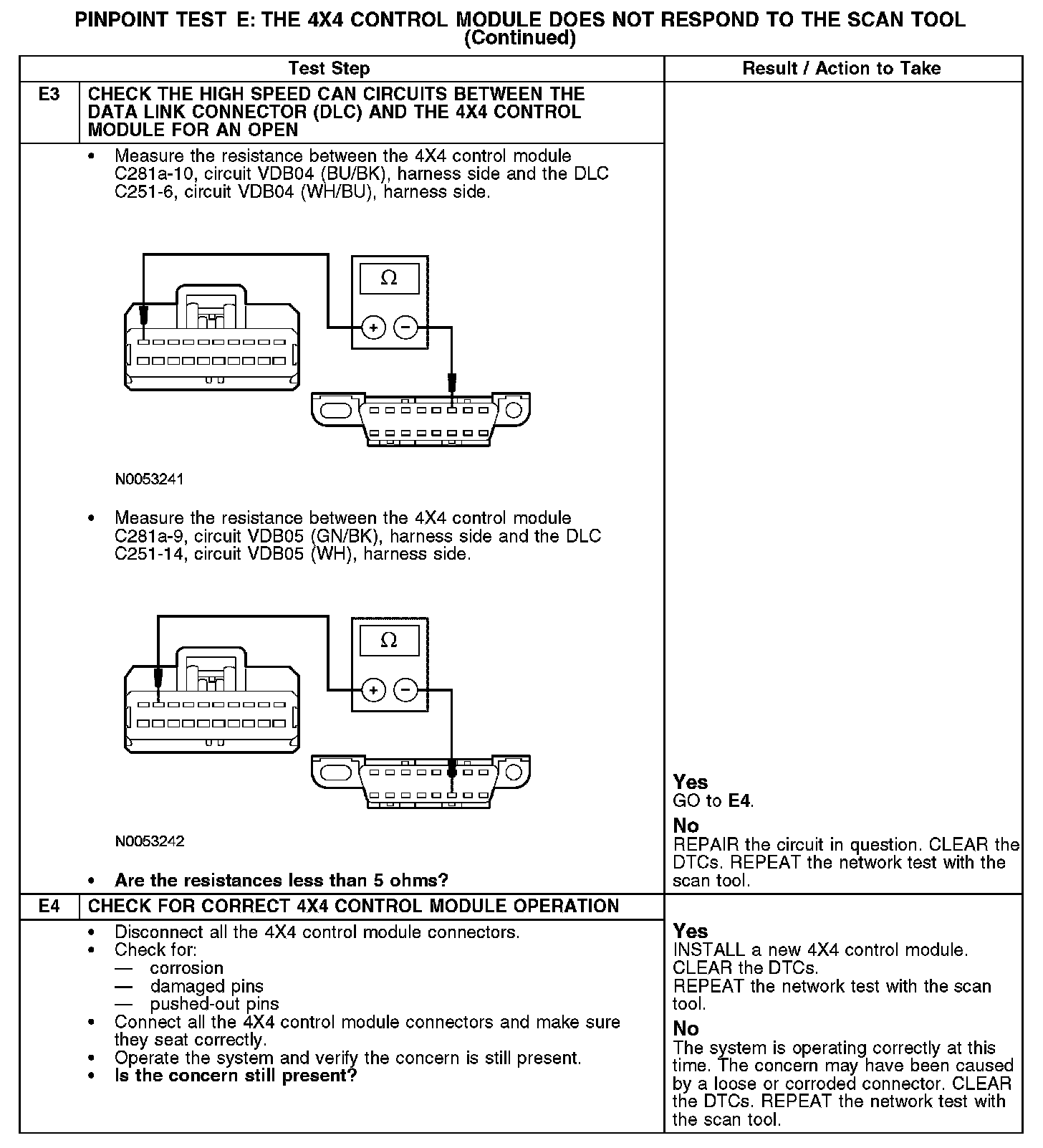PINPOINT TEST E: THE 4X4 CONTROL MODULE DOES NOT RESPOND TO THE SCAN TOOLNormal Operation