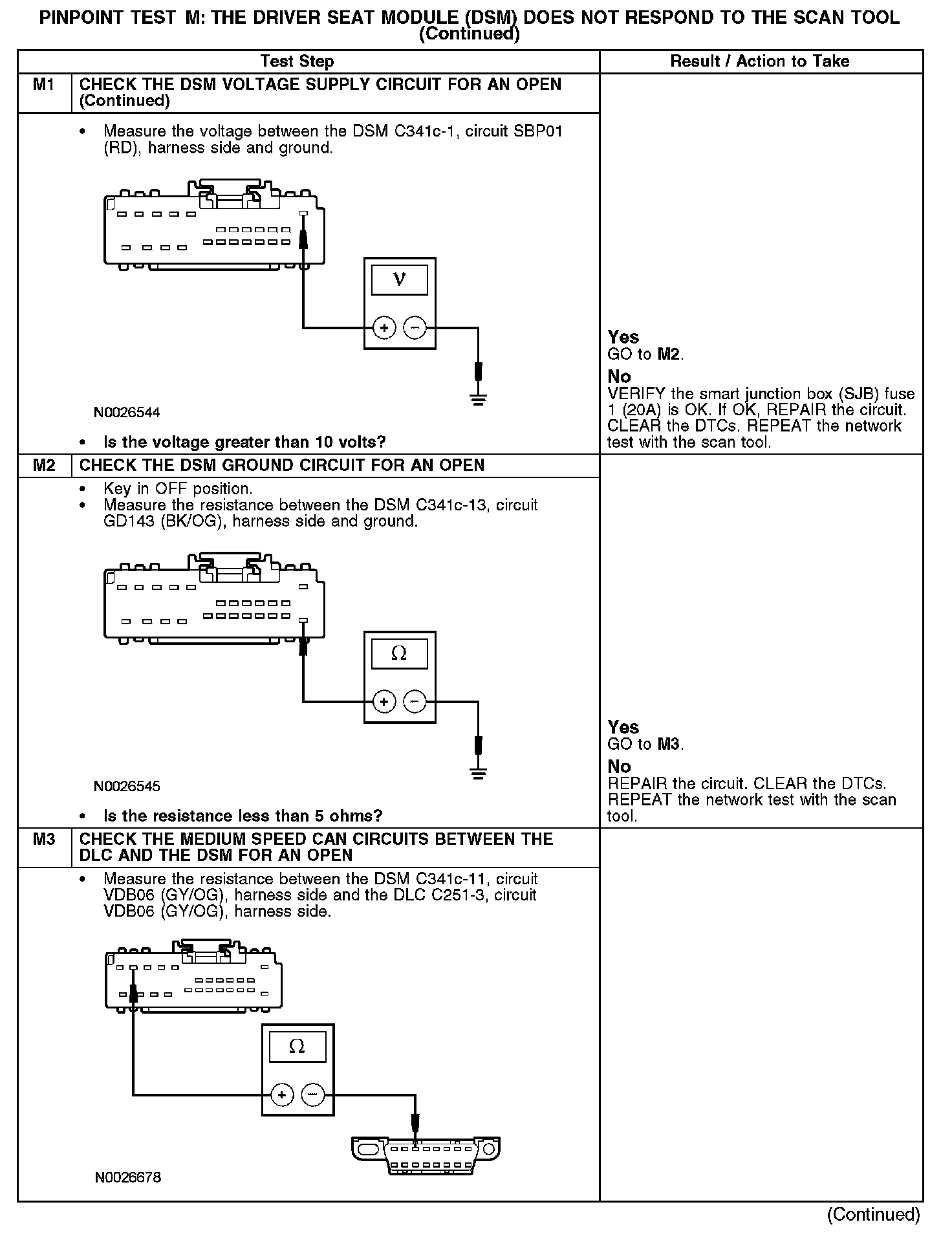 PINPOINT TEST M: THE DRIVER SEAT MODULE (DSM) DOES NOT RESPOND TO THE SCAN TOOL