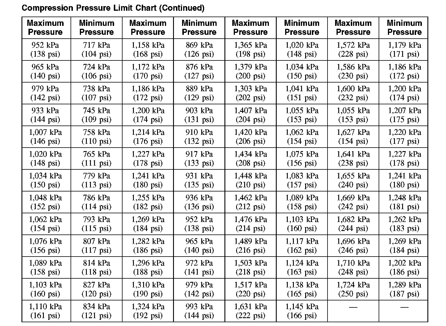 Compression Pressure Limit Chart (Part 2):