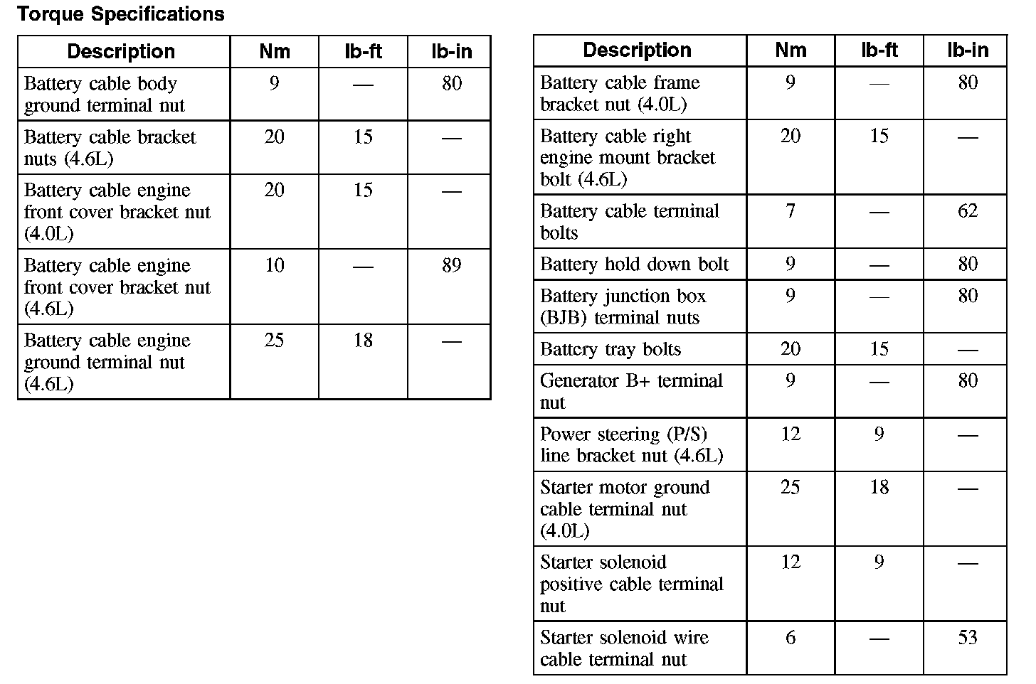 Torque Specifications: