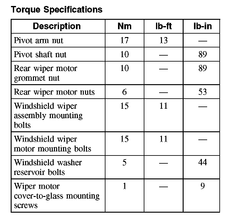 Torque Specifications