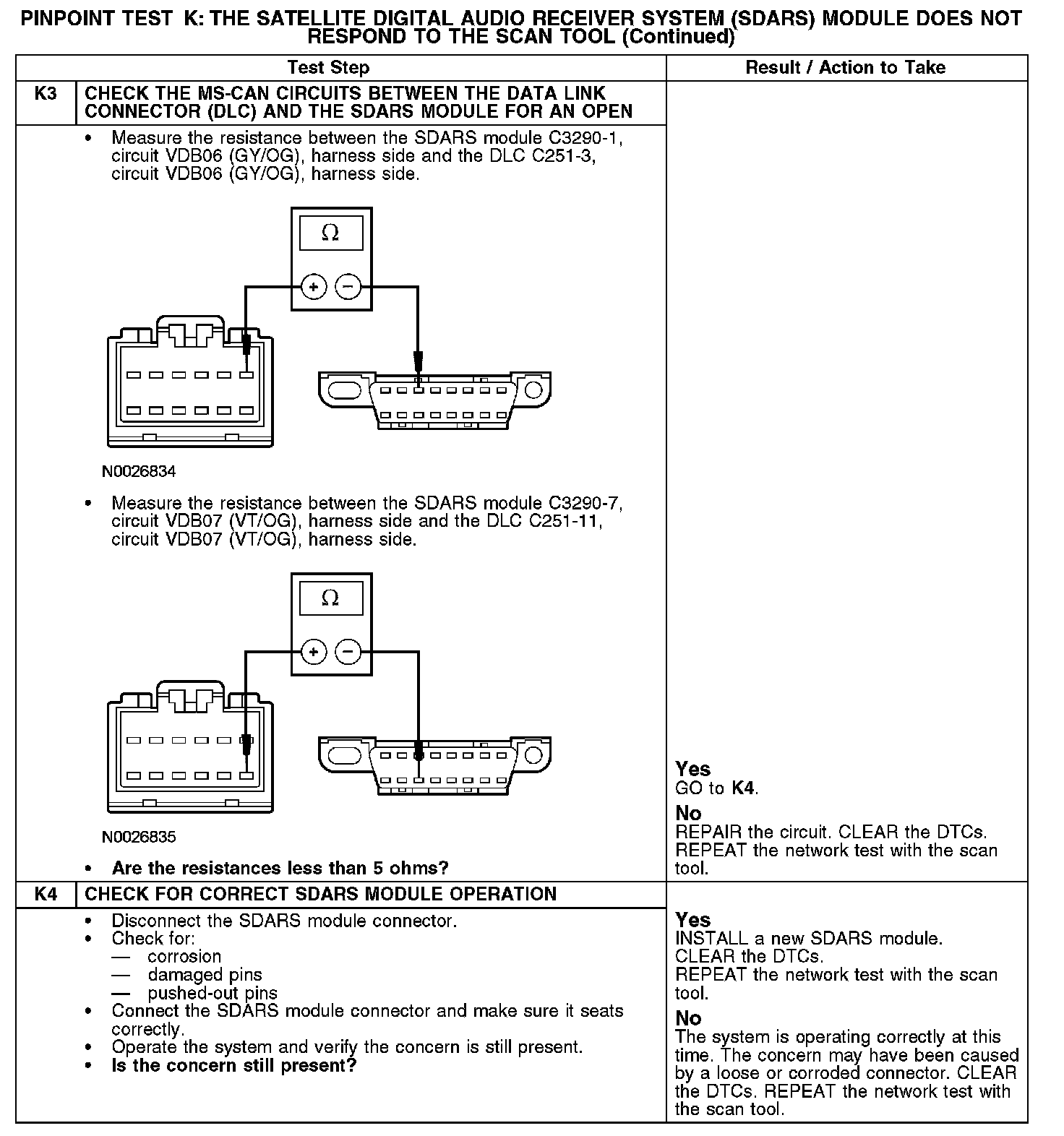 Test K: The Satellite Digital Audio Receiver System (SDARS) Module Does Not Respond To The Scan Tool