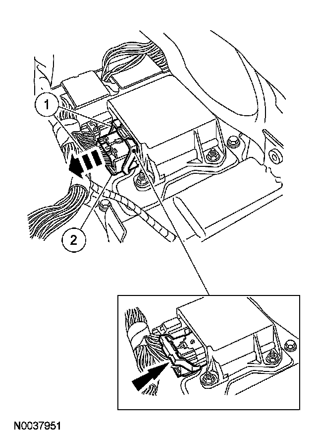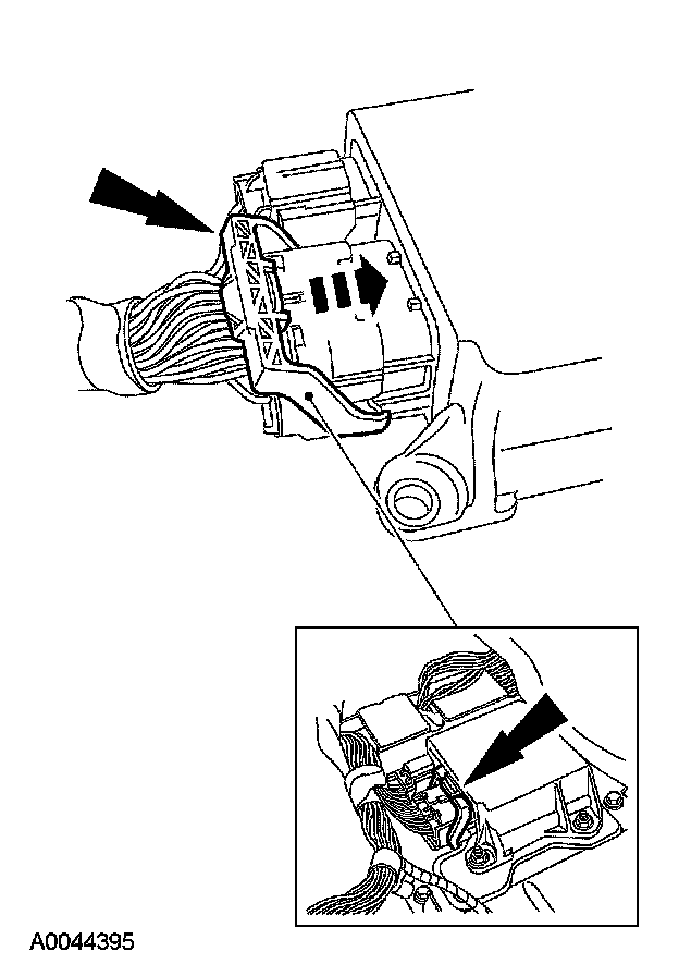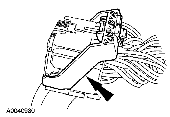 - CAUTION: Do not push the connector to the point where the lever pivots and seats itself. Light pressure is needed to get the connector into position on the restraints control module (RCM), before using the lever to fully seat the connector. Damage to the connector or component may occur.