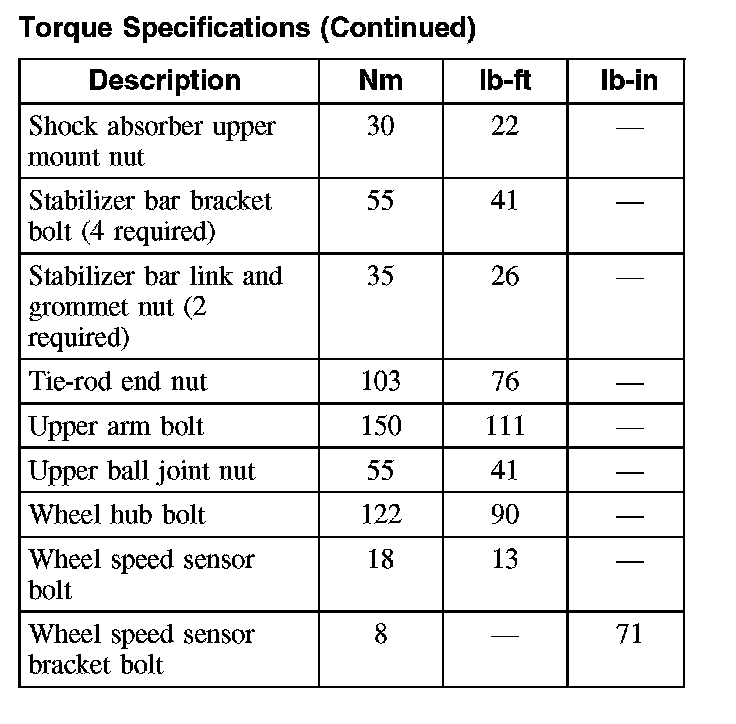 Torque Specifications