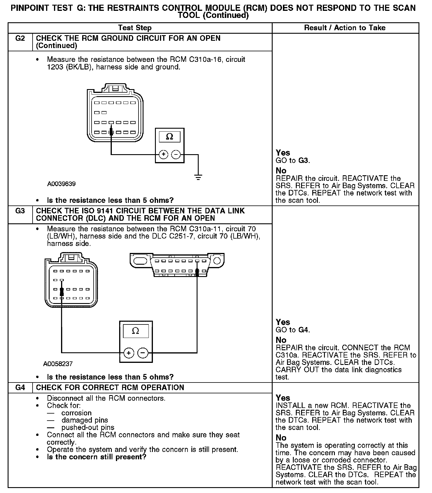 Test G: The Restraints Control Module (RCM) Does Not Respond To The Scan Tool
