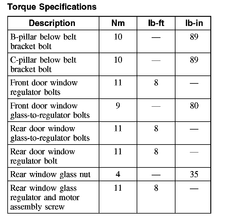 Torque Specifications: