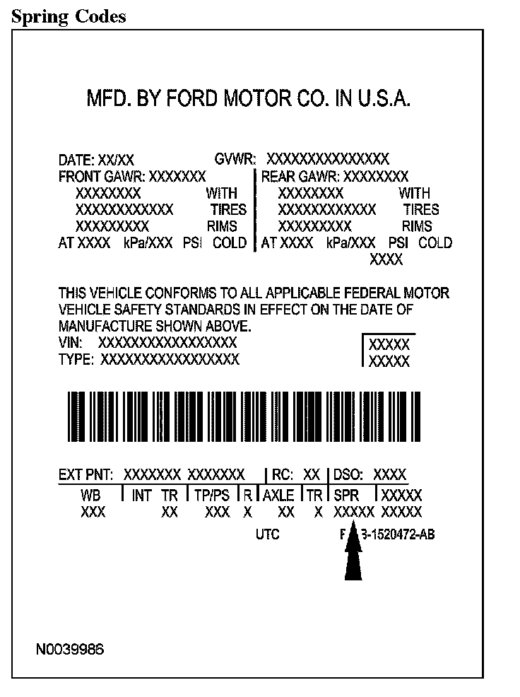 Spring codes are listed as a 2-part code. The first character identifies the front spring/torsion bar code. The second character identifies the rear spring code.