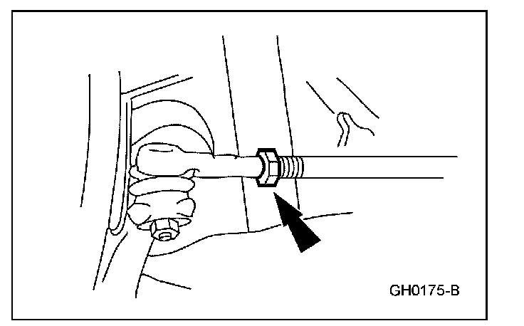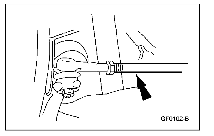 6. CAUTION: Do not allow the steering gear bellows to twist when the front wheel spindle tie rod is rotated or damage to the bellows may occur.