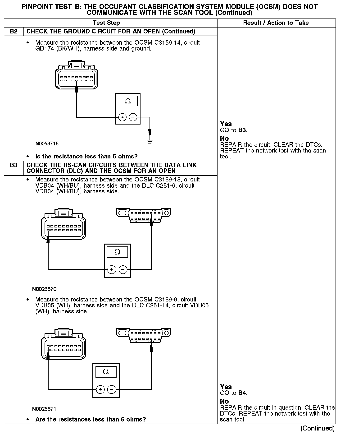 Test B: The Occupant Classification System Module (OCSM) Does Not Communicate With the Scan Tool