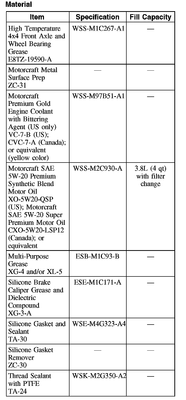 Capacity Specifications