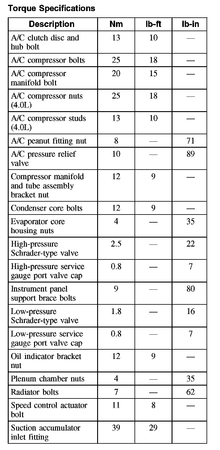 Torque Specifications: