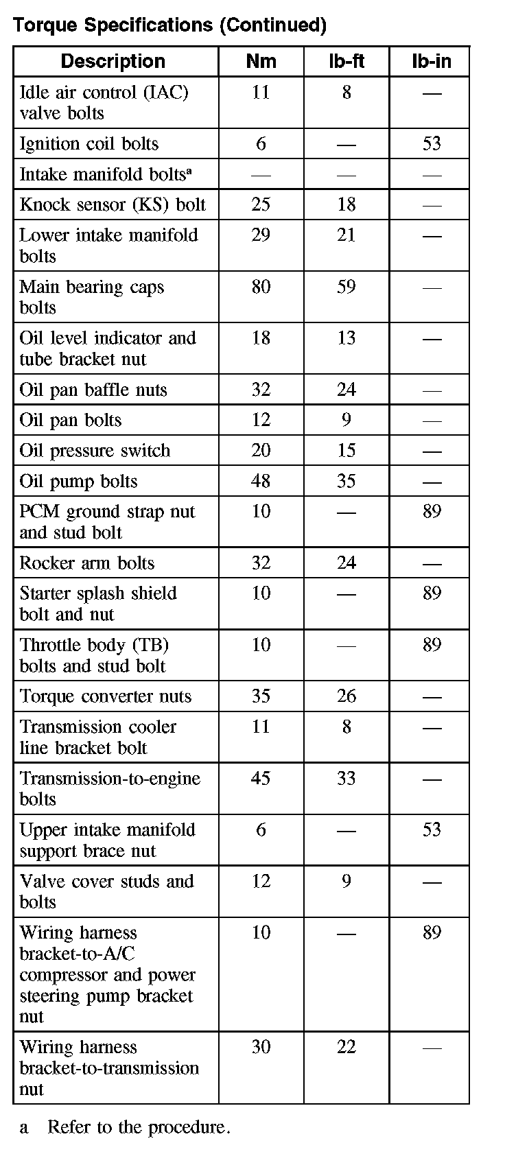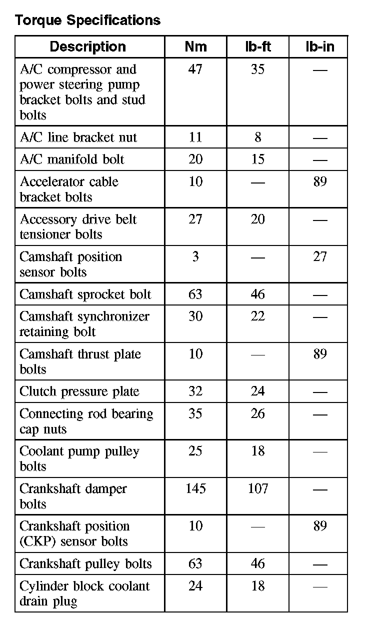 Torque Specifications