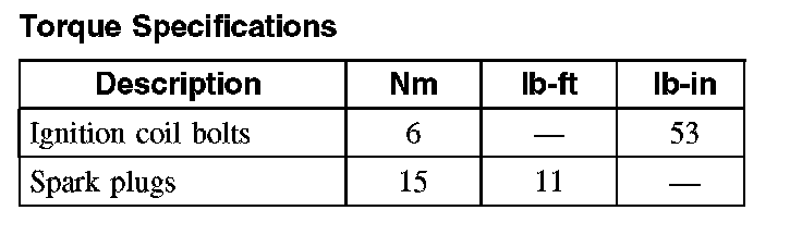Torque Specifications: