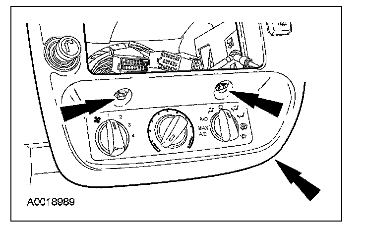 4. Remove the 2 instrument panel finish panel screws. Disengage the spring clips at the top. Remove the instrument panel finish panel.