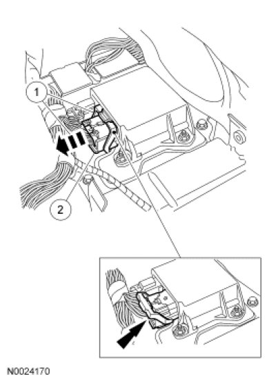- Using the connector position assurance lever, pivot it toward the RCM, drawing the connector into the RCM.