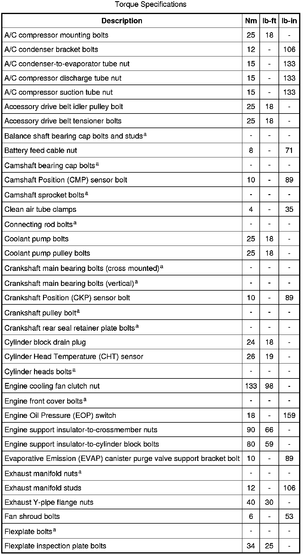 Torque Specifications
