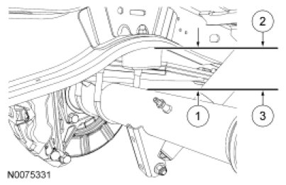 1. Measure the distance between the jounce bumper flange (Item 2) and the top of the axle at the casting parting line (Item 3) to obtain the ride height (Item 1). For additional information, refer to Specifications.
