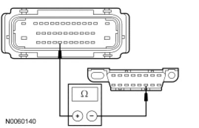 - Measure the resistance between the ABS module C155-18, circuit VDB05 (WH), harness side and the DLC C251-14, circuit VDB05 (WH), harness side.