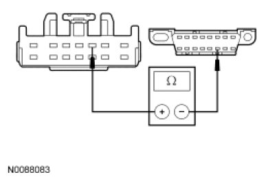 - For vehicles equipped with a telematics module, measure the resistance between the TBC module C2142-3, circuit VDB05 (WH), harness side and the DLC C251-14, circuit HSC2-A (WH), harness side.