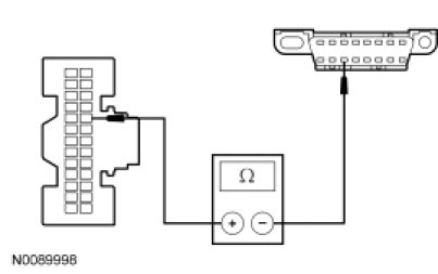 - Measure the resistance between the SJB C2280b-38, circuit VDB07 (VT/OG), harness side and the DLC C251-11, circuit VDB07 (VT/OG), harness side.