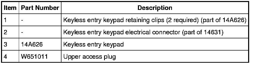 2. Using a long, flat blade screwdriver, or suitable tool through the upper access hole, release the rear keyless entry keypad retaining clip and position the keyless entry keypad aside.