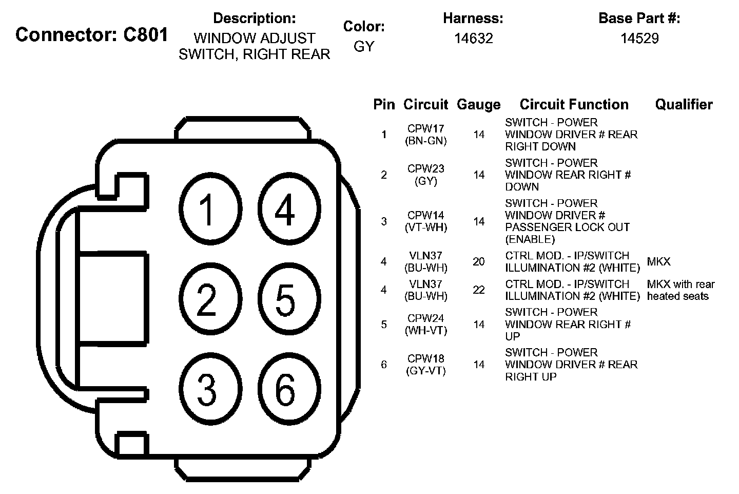 Window Adjust Switch, Right Rear