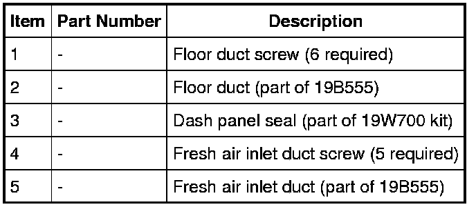 5. Remove the 5 fresh air inlet duct screws and the fresh air inlet duct.