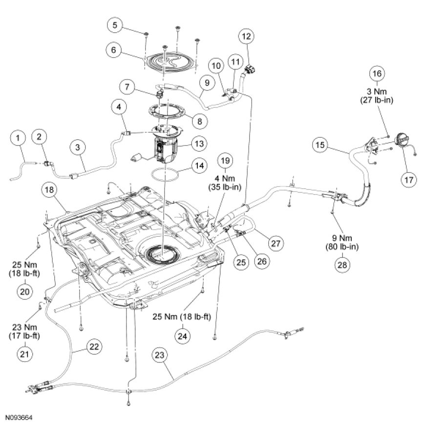 Fuel Tank and Filler Pipe - Exploded View