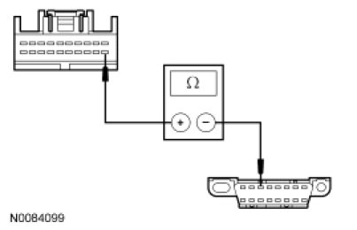- Measure the resistance between the audio DSP module C4348c-1, circuit VDB07 (VT/OG), harness side and the DLC C251-11, circuit VDB07 (VT/OG), harness side.