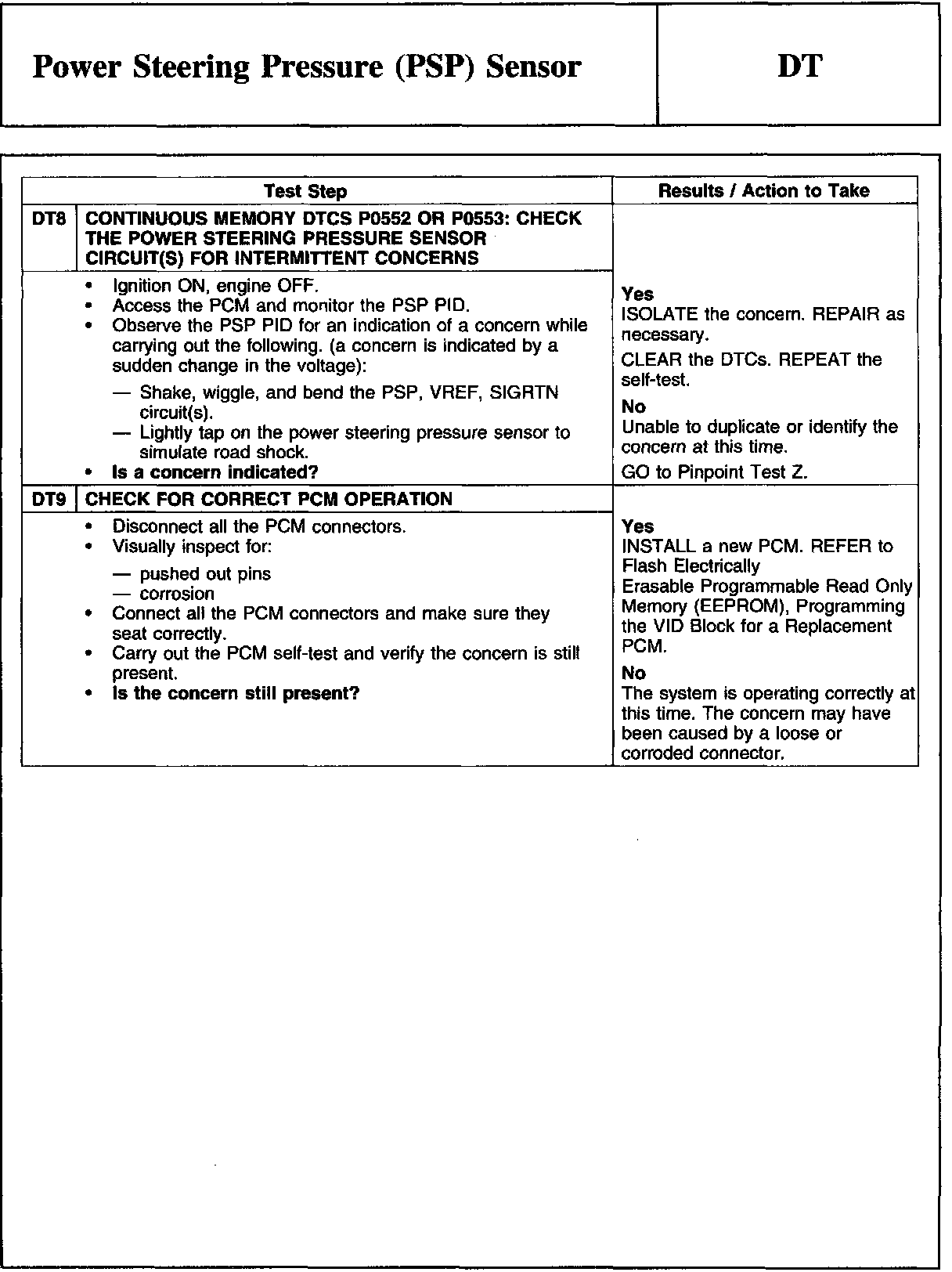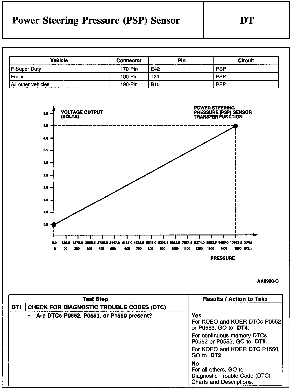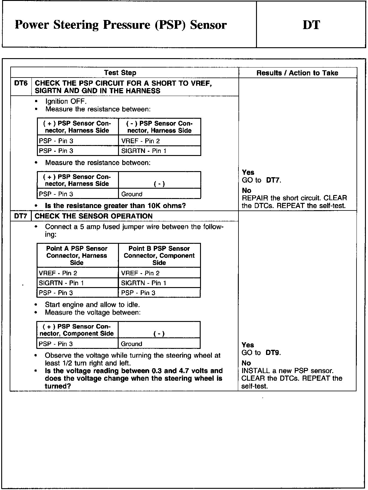 PINPOINT TEST DT: POWER STEERING PRESSURE (PSP) SENSOR