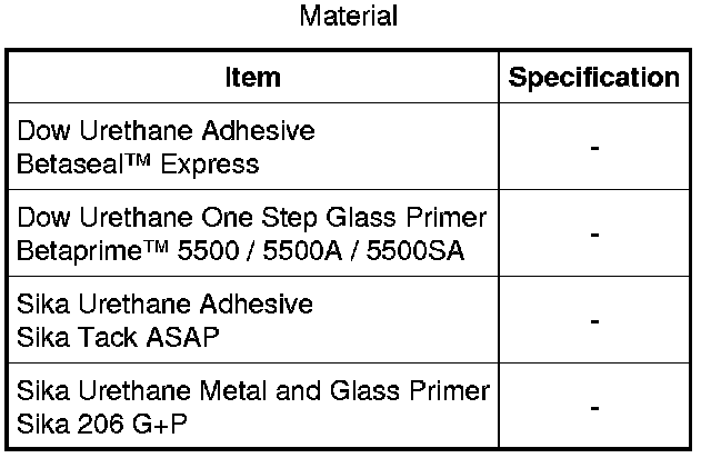 4. NOTICE: Be sure to use the same brand of cure-rate products for the adhesive and primer. Do not mix different brands of urethane and primer. Refer to the Materials Chart in this procedure.