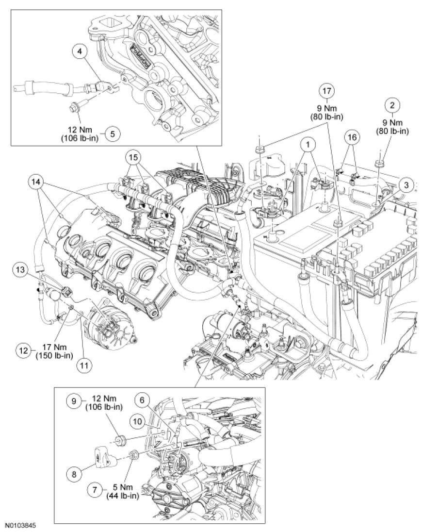 11. Position the generator B+ terminal protective cover aside, remove the nut and position the generator B+ terminal aside.