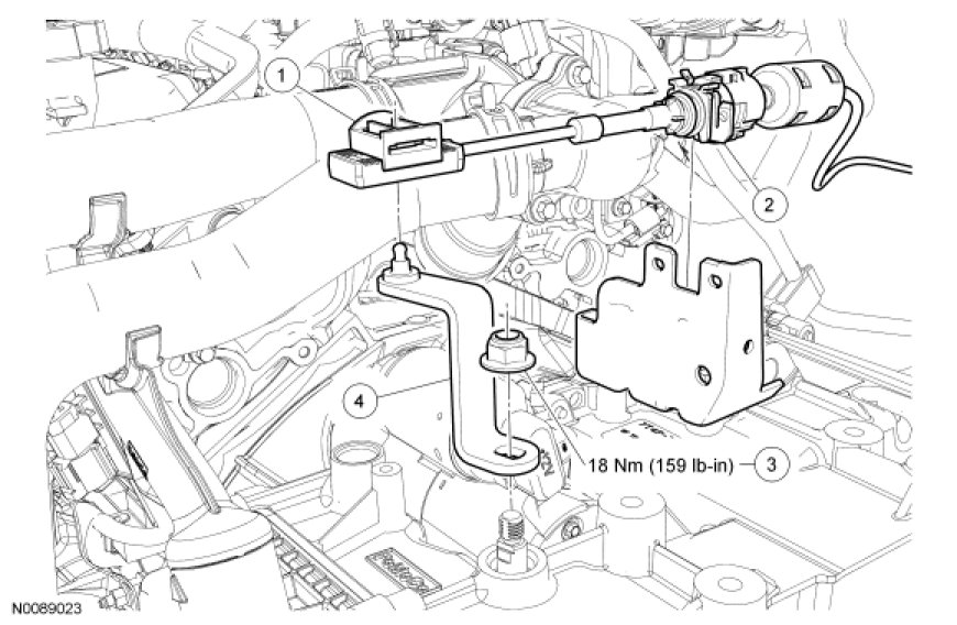 9. Detach the wiring harness retainer from the starter motor stud bolt and position the wiring harness aside.