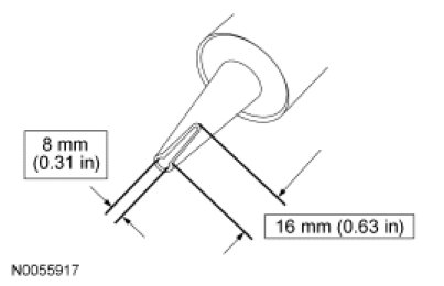 Using an appropriate tool, trim the urethane adhesive leaving a 1 mm (0.04 in) to 2 mm (0.08 in) base of original equipment urethane adhesive on the pinch weld.